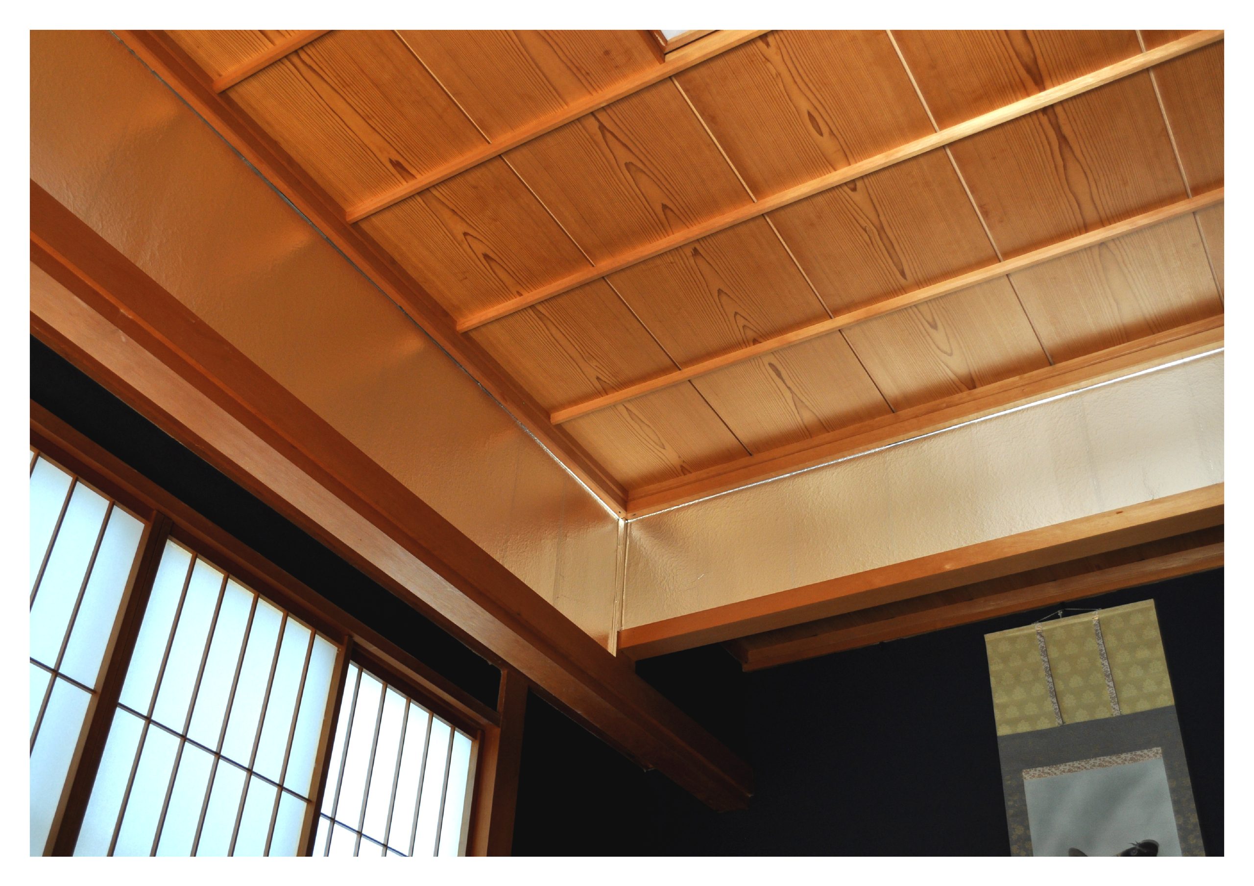 障子を通して入った自然光は、アルミホイルの壁に反射し、表面の凸凹を介して乱反射する。