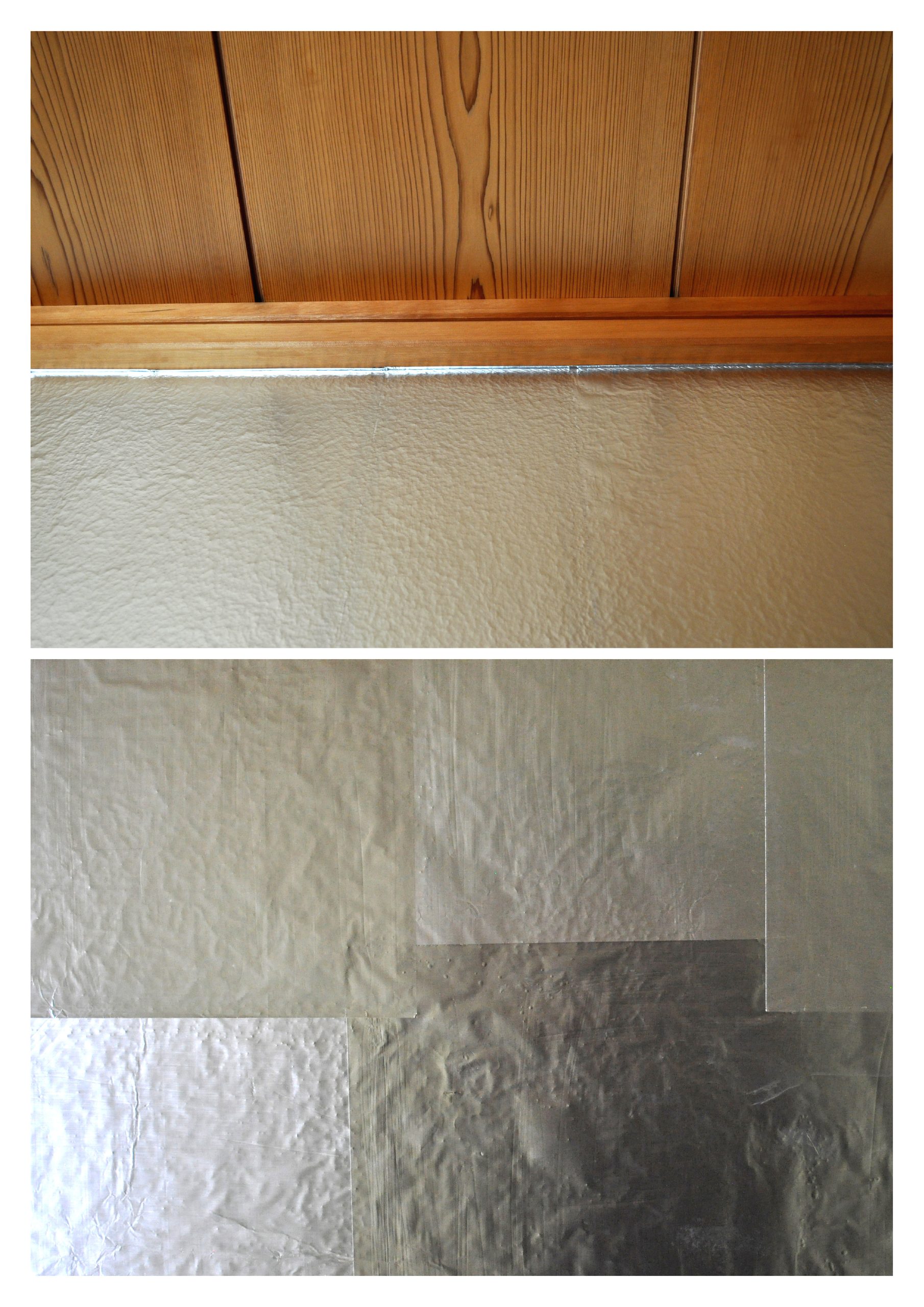 下地が砂壁なので、アルミホイル表面が凹凸になる。アルミホイルは柔らかいので追随する。